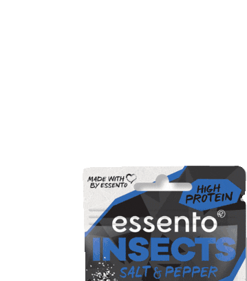 Essento Insects Salt & Pepper high protein snack featuring Tenebrio mealworms, proudly Swiss made and ready to snack.
