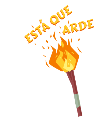 A fiery torch with the Spanish text 'Esta Que Arde Eso Esta Caliente' indicating something is hot or burning.
