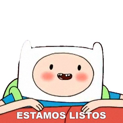 Finn de Hora de Aventura sonríe felizmente, declarando 'Estamos Listos' con entusiasmo, perfecto para indicar preparación.