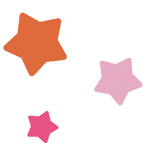 Three animated stars in vibrant orange and pink colors gently float and wiggle, adding a touch of sparkle and fun.