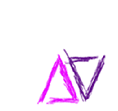 An abstract animated sticker by Rando Mv, featuring dynamic purple and pink triangles moving on a white background.