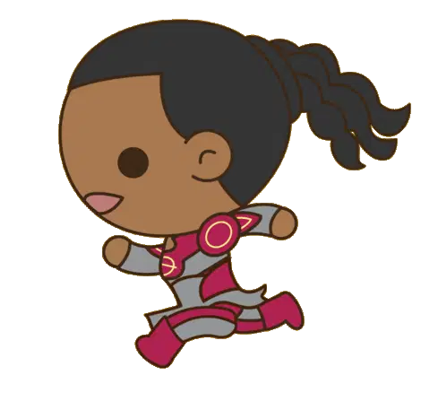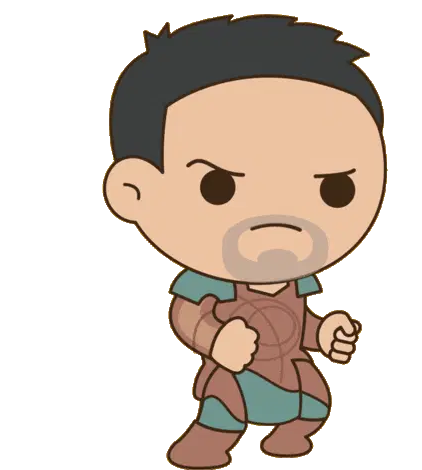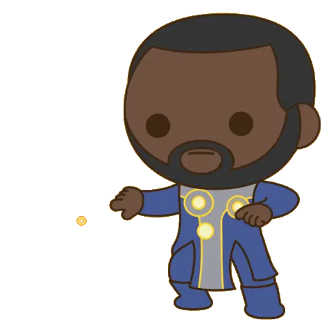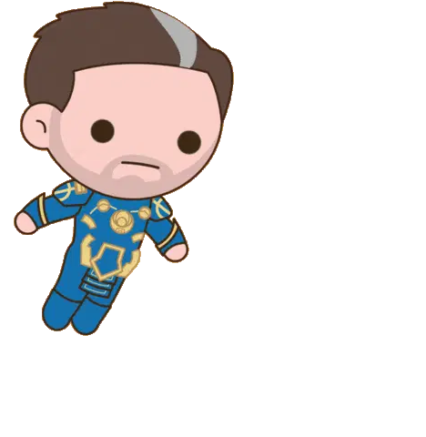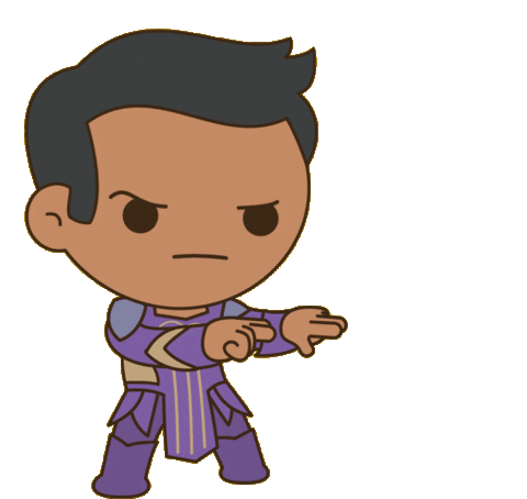 Chibi Kingo from Marvel's Eternals unleashes his cosmic energy powers, firing golden projectiles with a determined expression.