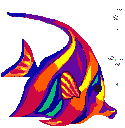 A vibrant pixel art Ethosaur Nonagon fish blowing bubbles, a charming and retro animated sticker.