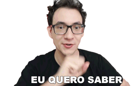 Gabriel Dearo animated sticker saying 'Eu Quero Saber' (I Want To Know) with an inquisitive and curious expression.