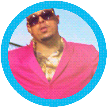 Wc No Beat, the man in a pink jacket and sunglasses, confidently points at you, embodying the 'I'm the man' attitude.