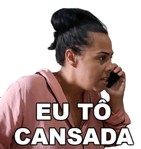 Evelyn Castro expresses exhaustion with 'Eu Tô Cansada' while on the phone. A relatable and humorous sticker from Porta dos Fundos.