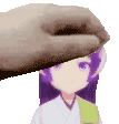 A pixel art sticker featuring Eua Higurashi from When They Cry, being gently patted on the head.