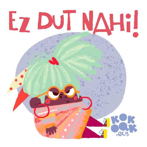 A person expresses strong refusal with the Basque phrase 'Euskara Ez Dut Nahi' (I Don't Want Basque).