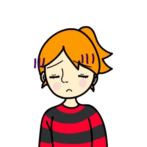 Evazc's cartoon girl, wearing a red and black striped shirt, closes her eyes, looking exhausted and sleepy.
