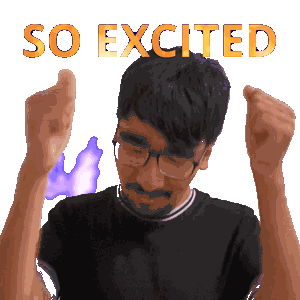 a pixelated image of a man with glasses and the words so excited