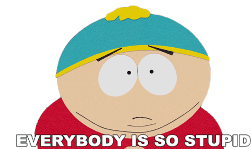 Eric Cartman from South Park expresses his frustration with the world, exclaiming 'Everybody is so stupid!'