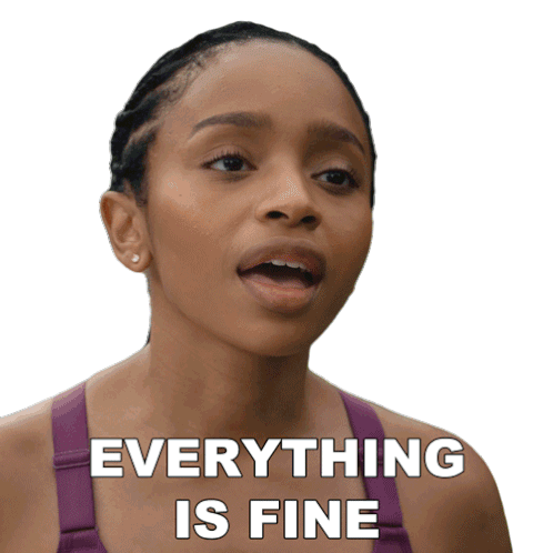 Jewel, portrayed by Briyana Guadalupe, says 'Everything Is Fine' with a forced smile in this animated sticker.