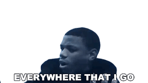 A Boogie Wit Da Hoodie (Julius Dubose) gestures while the caption 'Everywhere That I Go' appears, expressing a feeling of omnipresence.