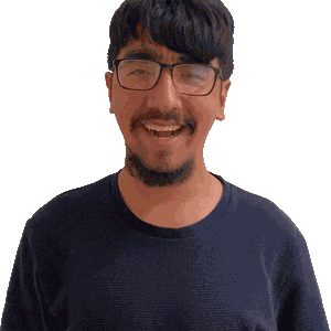 a man wearing glasses and a black shirt smiles