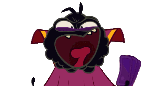 The Evil Spider from Om Nom Stories lets out a loud, menacing evil laugh, showing off its sharp teeth.