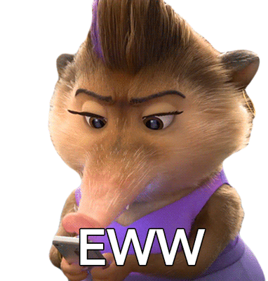 Charisma from Zootopia reacts with a strong expression of disgust, baring her teeth and displaying 'EWW'.