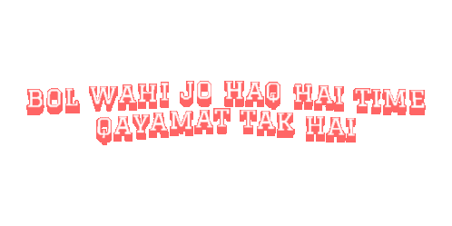 A powerful Urdu quote, 'Bol Wahi Jo Haq Hai Time Qayamat Tak Hai,' displayed in red text on a white background.
