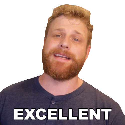 Grady Smith, with a beard, nods approvingly while the word 'Excellent' appears, conveying strong approval.