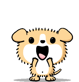 An adorable cartoon puppy jumps excitedly, expressing pure joy and anticipation. Perfect for showing you can't wait!