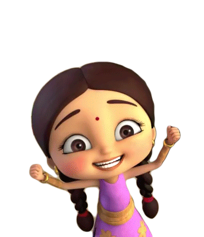 Chutki from Chhota Bheem, the beloved animated character, expresses pure joy and excitement with raised arms and a wide smile.