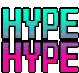 An animated pixel art logo displaying 'HYPE HYPE' in a dynamic blue and pink gradient, conveying excitement and energy.