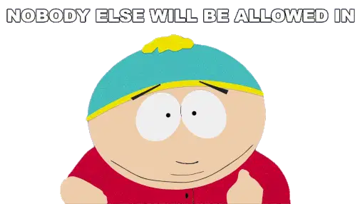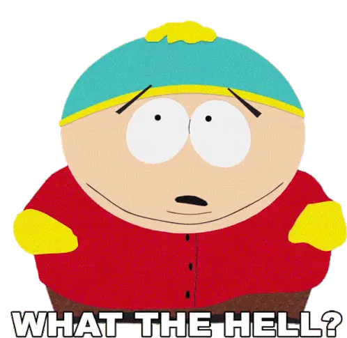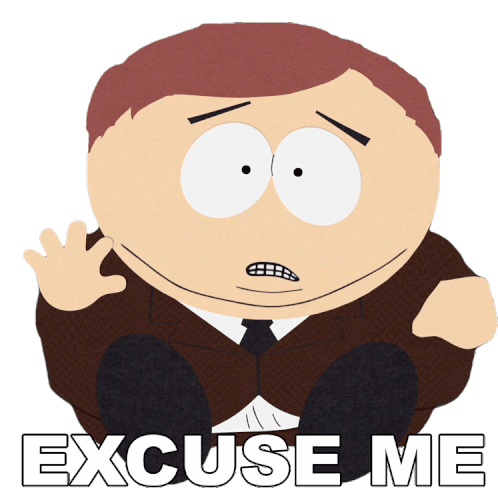 Eric Cartman from South Park looks surprised and says 'Excuse Me' in this animated reaction sticker.