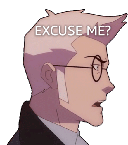 Percival De Rolo III from The Legend of Vox Machina looks surprised and asks 'Excuse Me?' with a serious expression.