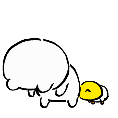 A cute white bear-like character with pink ears smiles alongside a small yellow chick with rosy cheeks in this animated sticker.