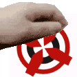 An animated sticker featuring a hand holding a distinctive red and black sign with a cross, associated with Exon Aimware.