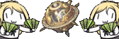 A charming Exos Orbs sticker featuring a cartoon girl holding a fan next to a friendly turtle in a whimsical scene.