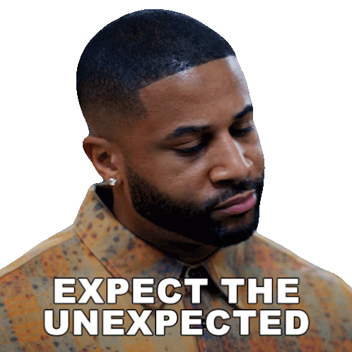 Zac (Devale Ellis) from Sistas looks on thoughtfully with the phrase 'Expect The Unexpected' displayed, hinting at surprises.