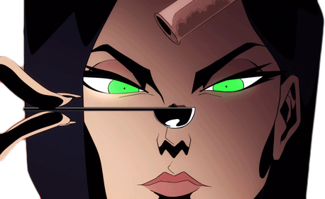 Viper from Valorant performs a chemical experiment, pouring a dark substance into her nose, with glowing green eyes.