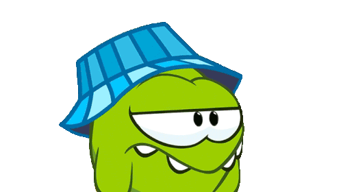 Om Nom, the character from Cut the Rope, expresses annoyance with a dramatic eye roll and a frustrated expression.