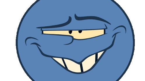 Om Nom from Cut the Rope raises an eyebrow with a sly, winking smile, showing a mischievous expression.