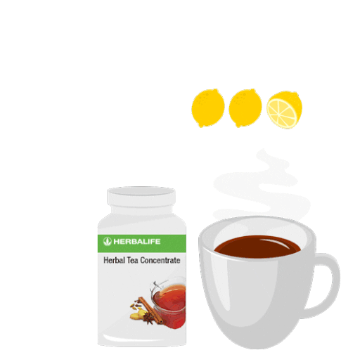 Enjoy a warm cup of Herbalife Herbal Tea Concentrate, enhanced with fresh lemon slices, perfect for a refreshing boost.