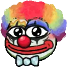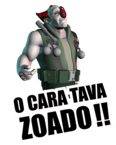 Fabiano Gama as a clown character, Ozob, points to his head with a grenade, exclaiming 'O Cara Tava Zoado!!' in this animated sticker.