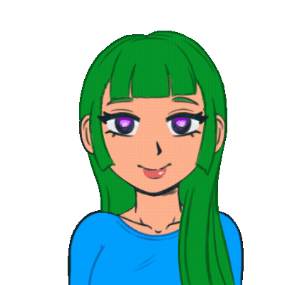 Fabuloso anime girl with vibrant green hair and a confident smile, surrounded by sparkling stars.