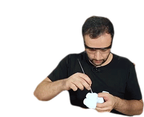Manual Do Mundo host focused on a DIY project, demonstrating careful preparation and concentration with a tool.