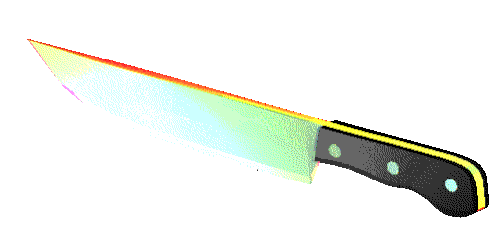 a knife with a rainbow colored blade and black handle