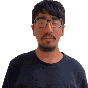 a man with glasses and a beard is wearing a black shirt