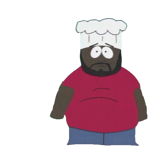 South Park's Chef expresses disappointment with a classic facepalm gesture, showing an 'oh no' moment.