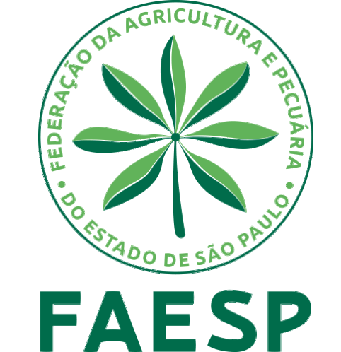 Animated sticker featuring the logos of FAESP, SENAR-SP, and Sindicatos Rurais, representing agriculture and livestock in São Paulo, Brazil.