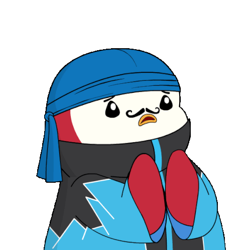 An animated sticker of a Pudgy Penguin character, wearing a blue durag and mustache, reacting dramatically as if fainting or gasping in shock.