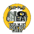 A bold yellow and black animated sticker promoting fair play, stating 'NO CHEAT' and 'THIS CLAN DOES NOT CHEAT'.