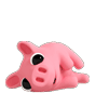 Rosa The Pig, a cute pink pig with big black eyes, falls over onto its back, wiggles, and then stands up again on a white background.