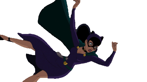 Batman catches Catwoman as they fall through the air, a dynamic moment from the animated series.