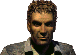 A pixelated animated sticker of Killian from Classic Fallout, featuring his iconic talking head animation.