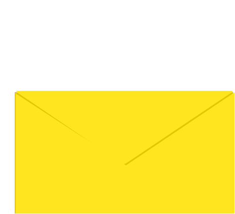 A bright yellow envelope opens to reveal the text 'Pokana Za Bila' (Invitation for Bill) in red, a sticker from Falshgruba.