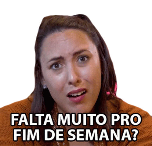 A woman with a worried expression asks, 'Is it much longer until the weekend?' expressing anticipation for the weekend.