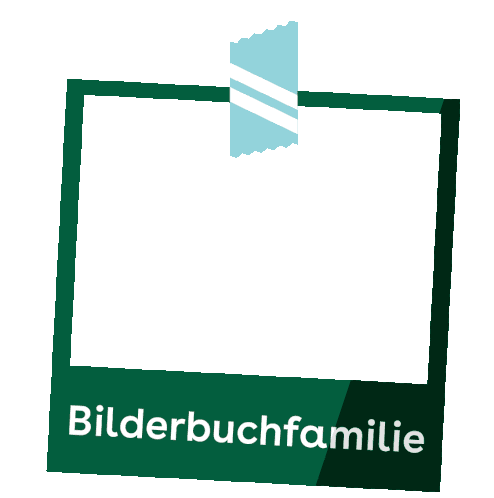 A stylized sticker featuring a family silhouette within a photo frame, representing health and well-being for a campaign.